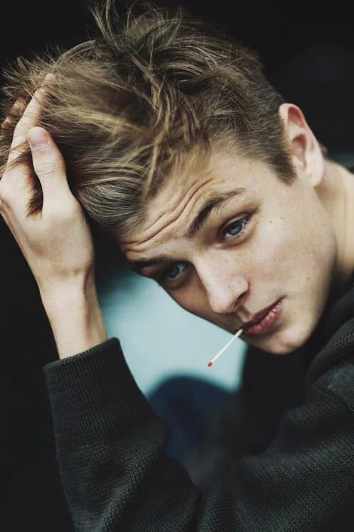Piercings: An old one left in his tongue that he often tugs on to mess with his own tongue.