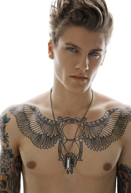 Tattoos: Crest of Red Dragon Society on back of right hand.